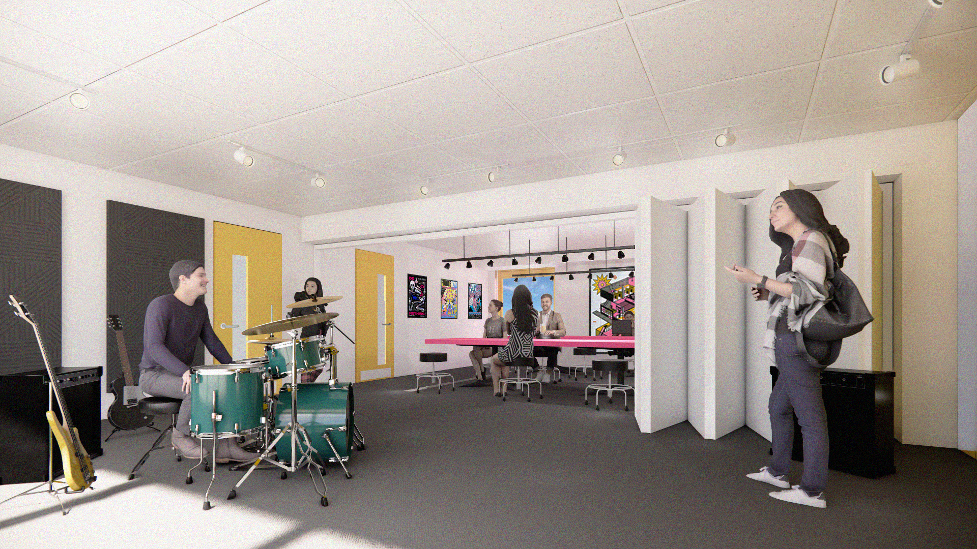 With the entrance to the new venue space at the rear of the site, on Henry Street, connecting the new venue to our existing space will be a state-of-the-art studios complex. We will build 12 acoustically treated, dedicated music studios and teaching spaces in a one-storey extension. This modular facility will: